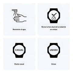 - Doble horario para visualizar dos zonas horarias simultáneamente.